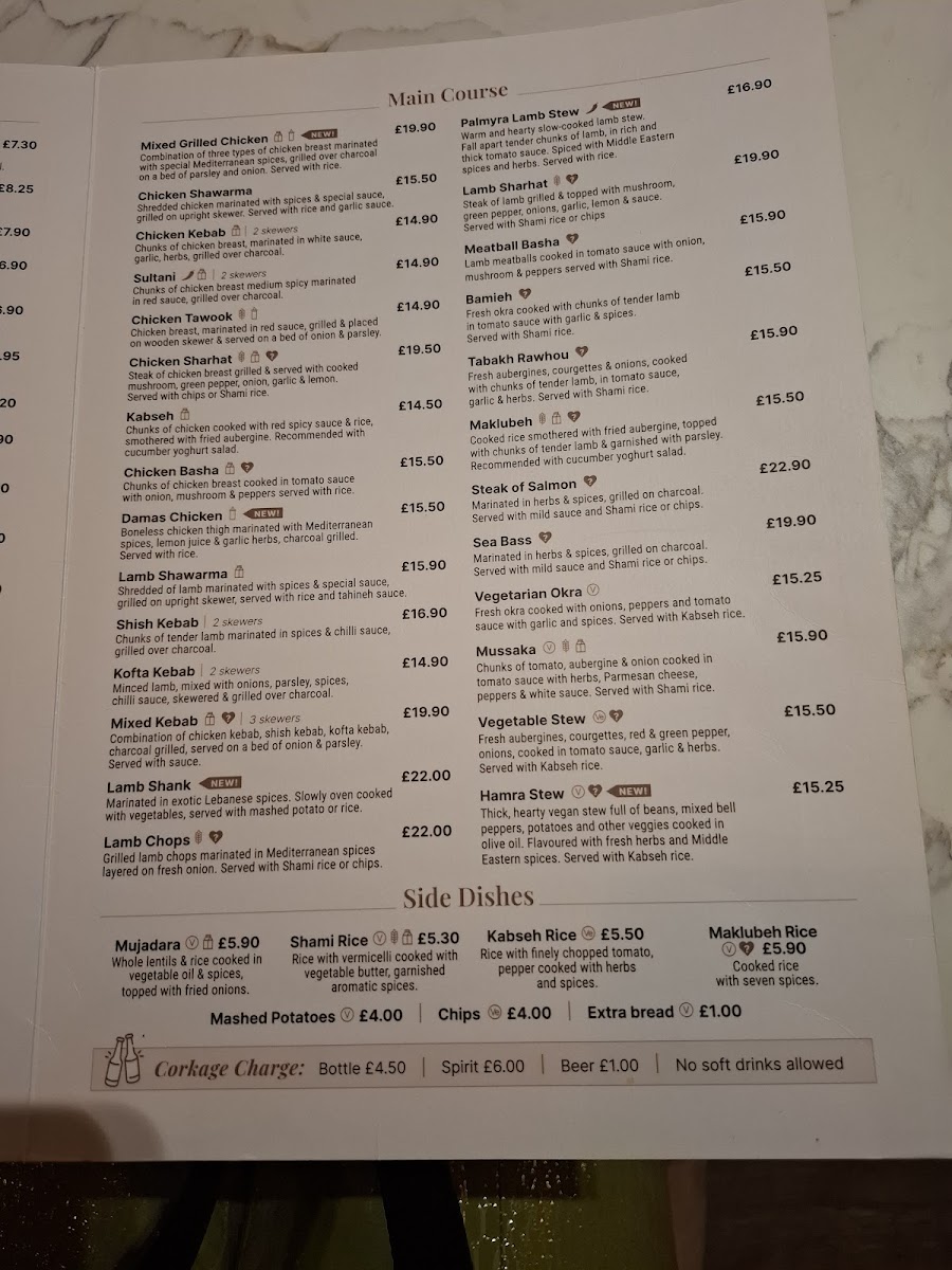 Moving to the Main Course, the offerings are a standout. The Lamb Chops are a must-try, tender and juicy, while the Palmyra Lamb Stew and Lamb Sharhat Meatball Basha provide deeper, more complex flavors that are sure to satisfy any meat lover. If you’re in the mood for something different, their Bamieh (okra stew) is an excellent vegetarian option.