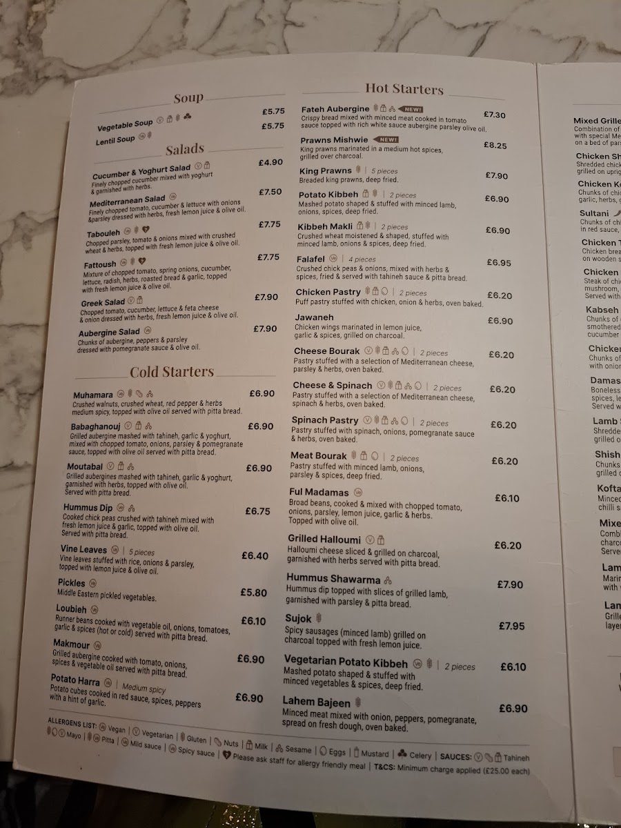 The menu at Yara restaurant in Stockton Heath offers a delightful range of Middle Eastern-inspired dishes, perfect for those seeking flavorful and authentic meals. For starters, their Lentil Soup and Vegetable Soup are great choices to begin the meal, providing a warm and hearty start. The selection of Salads includes fresh and vibrant options like Cucumber & Yoghurt Salad, Mediterranean Salad, Tabouleh Fattoush, and the classic Greek Salad-all light, refreshing, and packed with flavor.